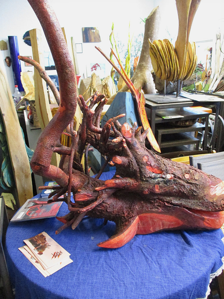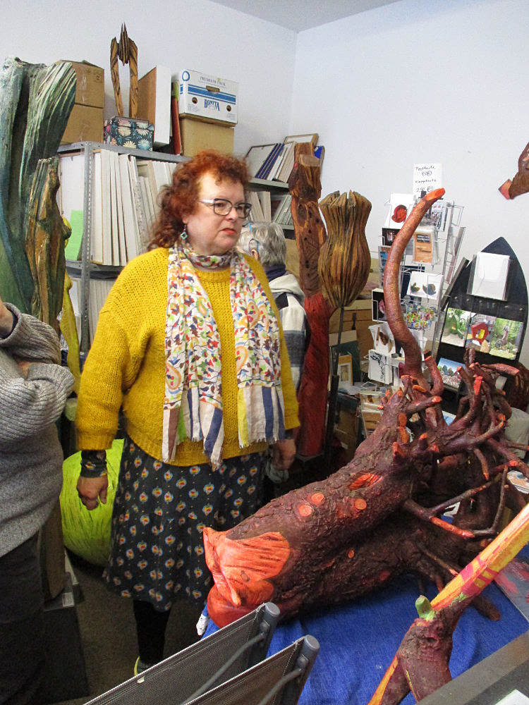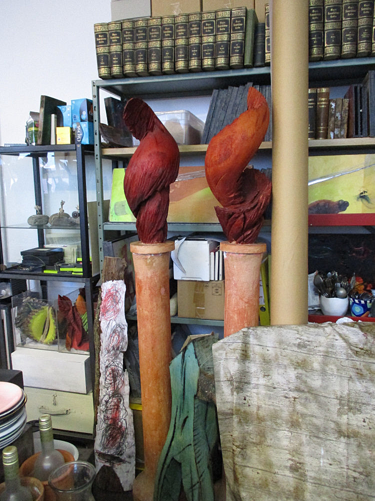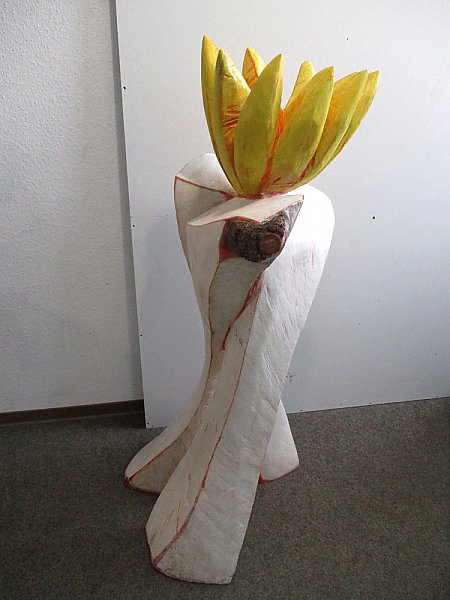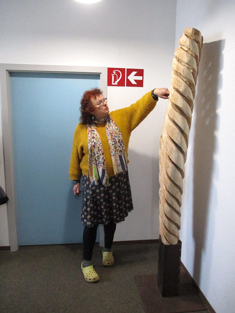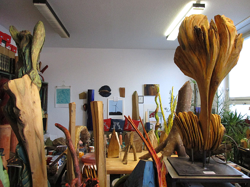 EBBA Kaynak ist Bildhauerin in Schorndorf. Außergewöhnlich ist ihr Umgang mit der Kettensäge. Damit formt sie ihre Kunstwerke, inspiriert durch Literatur, Religion, Natur und Kultur aus der ganzen Welt. So entstehen ihre farbig gefassten Skulpturen, alle aus nur einem Stück Holz.
