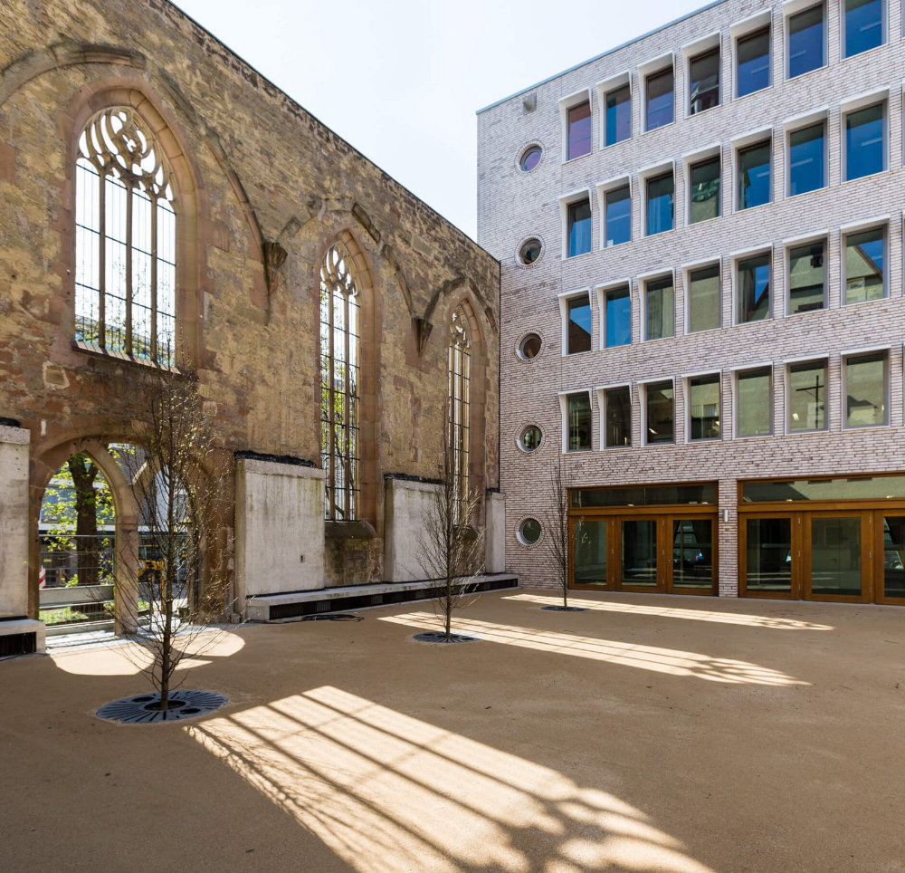 Der Hospitalhof Stuttgart blickt zurück auf eine lange Geschichte funktionaler Umnutzungen – Kloster, Hospital, Stuttgarter Polizeiamt und -gefängnis, in dem unter dem nationalsozialistischen Regime Verbrechen gegen die Menschlichkeit verübt wurden.