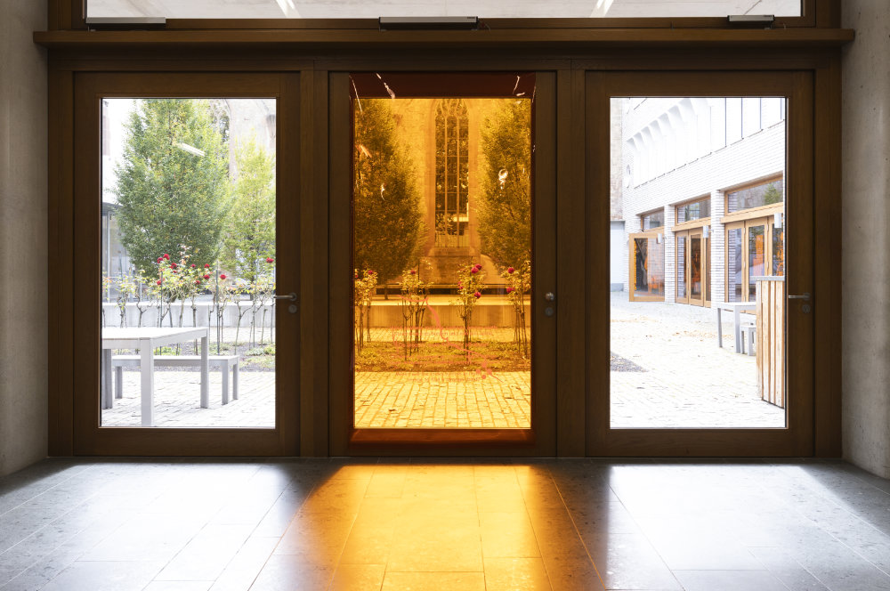 Die bewegte Geschichte des Hospitalhofes lässt sich insbeson- dere in der Vielfalt und Gegensätzlichkeit seiner architektonischen Elemente nachvollziehen. Hier docken Sander und Stürmer mit ihren Werken an und erwirken räumliche Interventionen in der Hospitalkirche, im Innen- sowie im Außenbereich des Hospitalhofs. Dieser Bau kann so als Brennglas betrachtet werden, aus dem Fragen nach kollektiven und individuellen Formen des Erinnerns erwachsen. Können statische Strukturen, wie Denkmäler und historische Bauten dabei helfen, aufrichtig zu erinnern, oder benötigt es neue, fluide Konzepte, die nur über einen hohen Grad der Individualisierung und Transformation erreicht werden können? Und auf welche Weise schreiben sich zeitgeschichtliche Geschehnisse bis heute in historische Orte ein?